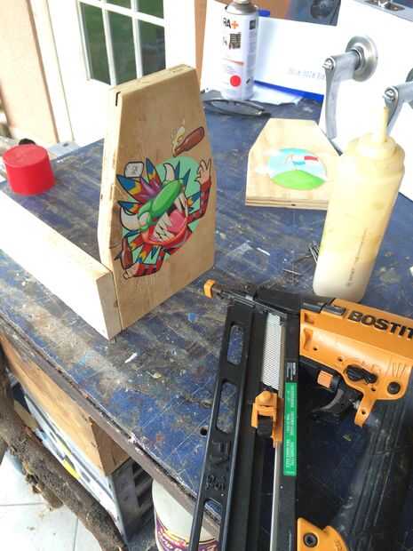 Usar un tornillos 1 1/2 para esto y mi pistola de clavos y por supuesto. Pegamento