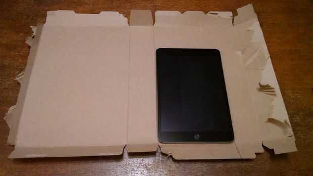 Trazar el contorno del iPad a la caja con la línea en el lado derecho del iPad que se extiende hasta la parte inferior de la cartulina.
