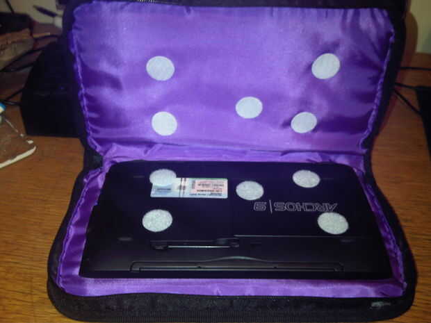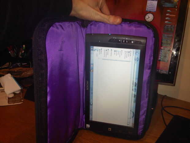 luego añadir algunas cintas de velcro a la parte superior de la cartera y agregue un poco en el pc tablet (archos 9 en este caso) he utilizado 5 como estos parecían suficiente para apoyarlo.