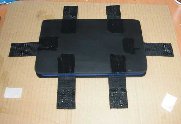 a poner el marco trasero encima de la tableta y más pegamento de contacto en la parte posterior del marco y las correas, la parte superior va pegada al velcro