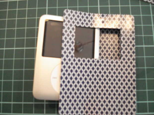 saqué una baraja de cartas y ahuecado un espacio interior para mi Ipod Nano.Luego montar el Ipod dentro y había montado en una tarjeta en la espalda y uno con un agujero de observación en el frente...Todavía puede utilizar la rueda de clic y es fácil