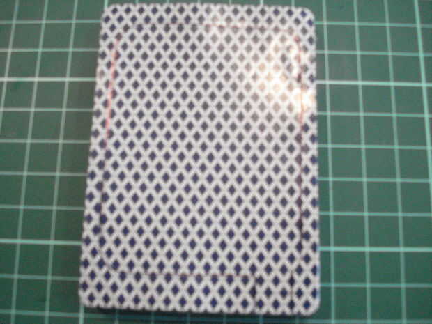 tomar la pieza calcada y recortarlo luego ponerlo encima de la baraja de cartas pegadas y trazar sobre la cubierta.