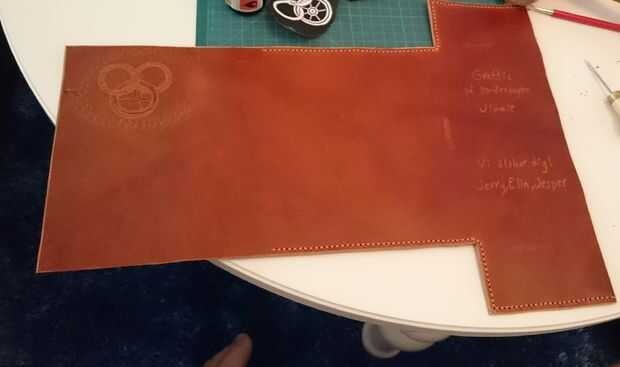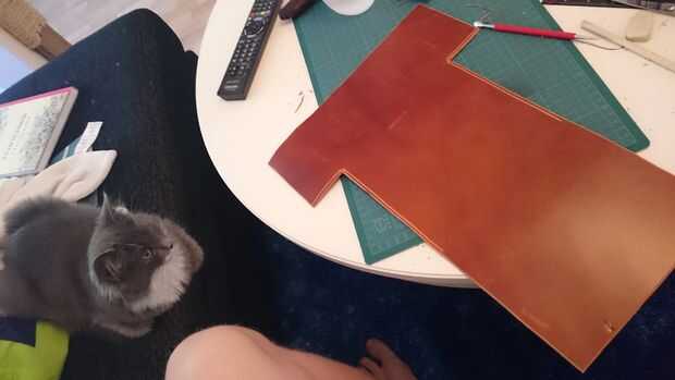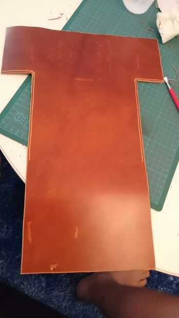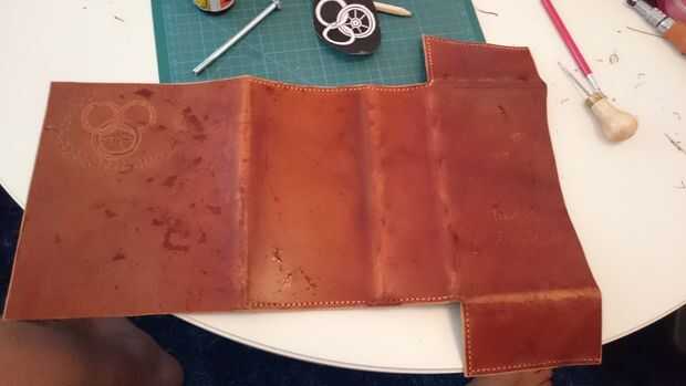 Moje el cuero y golpeó las curvas con un martillo de madera.