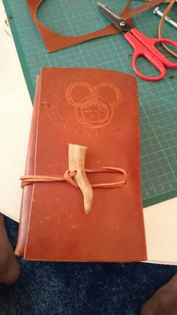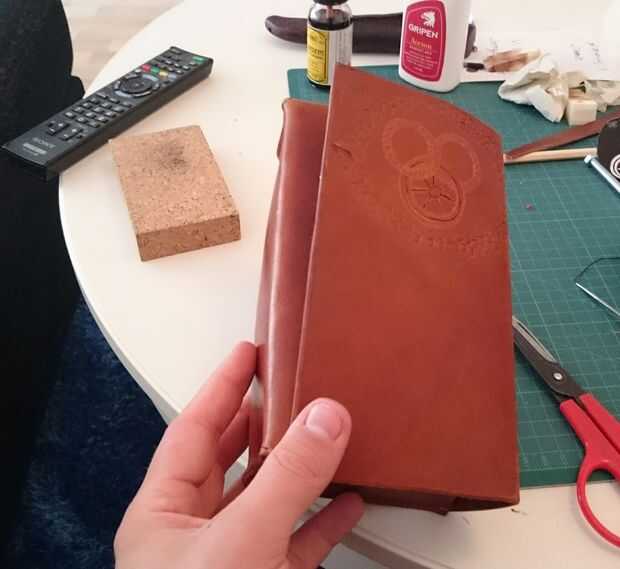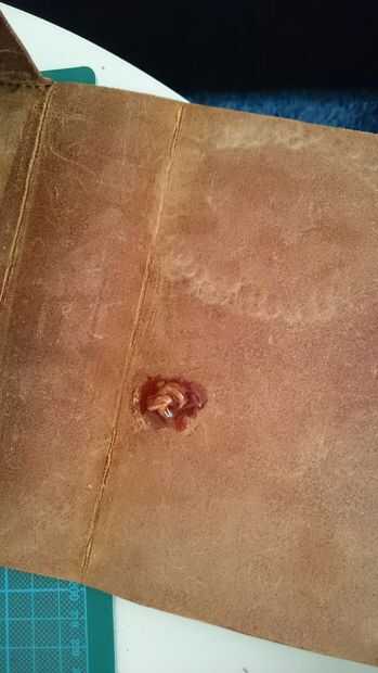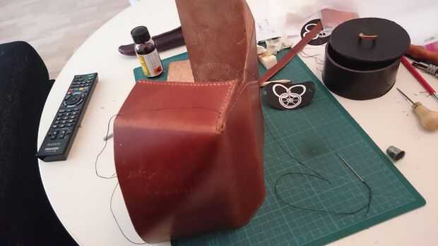Cortar agujeros y correas y Reno cuerno de cuero usado para cerrar el caso. pega los bordes en el interior.
