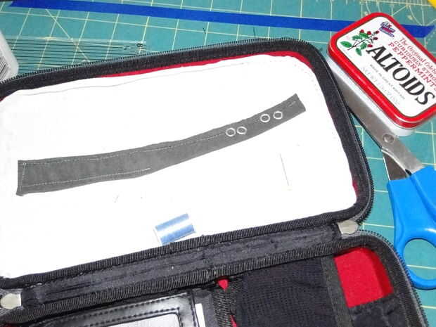 Los anillos son cosidos en los extremos opuestos por lo que no es tirarse todo demasiado. Puede utilizar una aguja o un lápiz para marcar donde los anillos tienen que trabajar para usted.