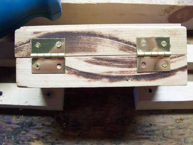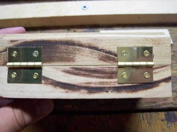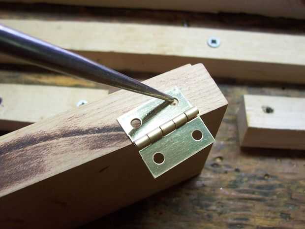 Instale las bisagras como mejor parezca. Mía puse 1/2 pulgada en cada extremo en la parte posterior. He intentado colocar el lado que peor mira en la parte posterior y suerte que suficiente que uno de los orificios al azar fue cubierto para arriba. No sé dónde que proceden.