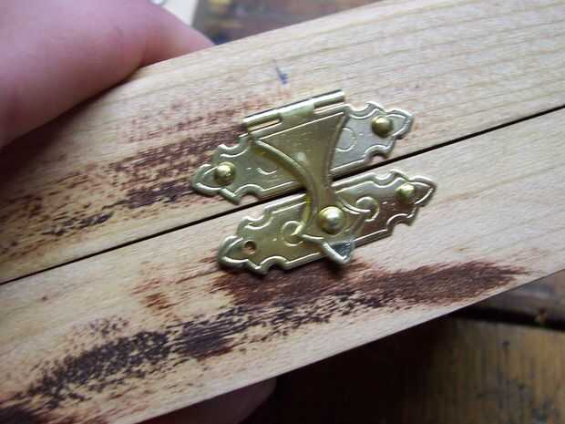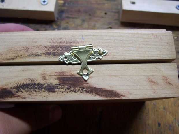 bisagras de cobre amarillo y hebillas de cobre amarillo pequeño, se me olvida el nombre y las dimensiones.