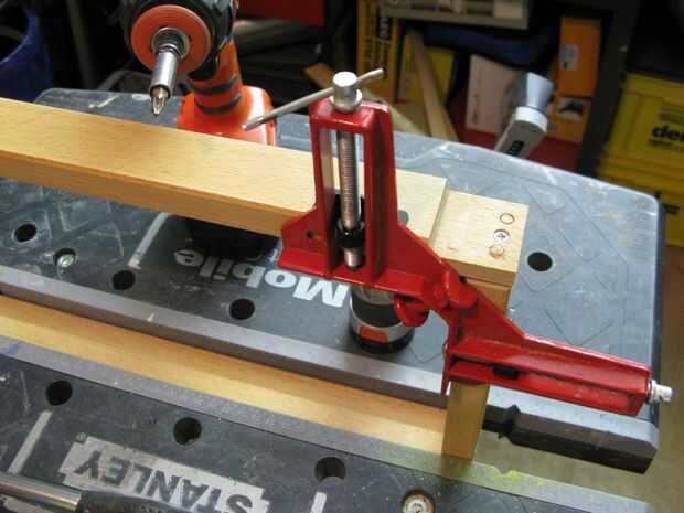 Utilice tacos y tornillos. Taladre los agujeros para tacos, perfore previamente los orificios para tornillos. Pegar los tacos en los lados cortos de marco, por medio de una gota de pegamento para madera.