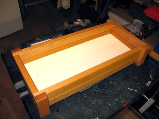 La parte superior de montaje: montar el marco con el vidrio. Fije el marco con tornillos.