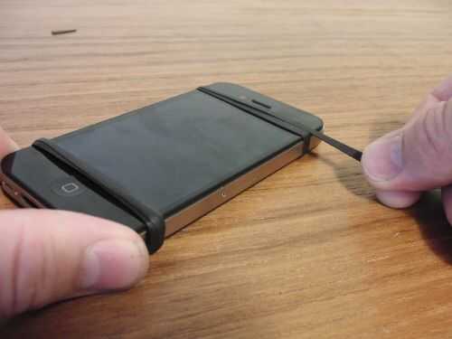 -Envuelva el primer tramo alrededor de la base del teléfono - entre el botón de "Inicio" y la parte inferior de la pantalla