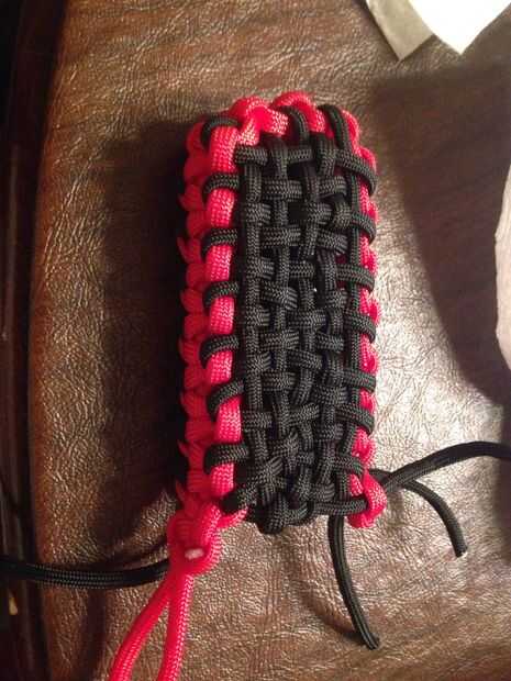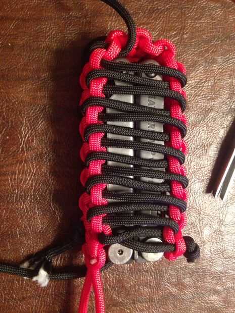 Paso 1: Empezar a hacer el contorno Usted necesita medir el tamaño de paracord. Entonces comienzan a hacer parte. (ver fotos)Paso 2: Envolviéndolo Después de envolver cables alrededor y atarla.Paso 3: Roscado de la parte posterior Ahora necesitas la