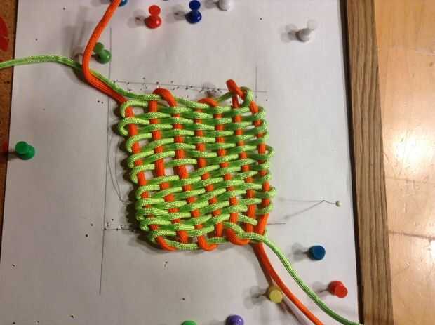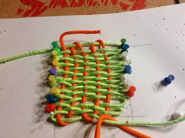 Después de terminar de tejer el color secundario a través de quitar los pernos y ajuste las cuerdas hasta que se distribuyen uniformemente. En el lado inicial sólo puede hacer un nudo o como hice y entre las cuerdas y luego tiró de él a través de. (ver siguiente paso)