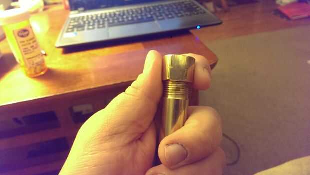 Giro en una de las tapas. Llenar el tubo con sus pastillas. Gire en la segunda tapa.