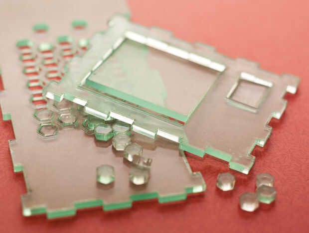 Al entusiasmo que ha recibido sus placas de plexiglás cortado, puede desmontar las piezas y eliminar las capas de protección en ambos lados. También puede dejar la capa externa y cuando la caja está montada, que evitará arañazos o también pegamento va a arruinar la superficie. Guardar todos los hexágonos pequeños para un bonito proyecto ;-)