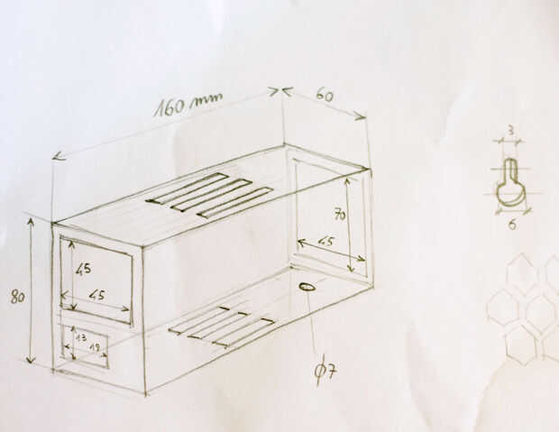 Mi idea era añadir un interruptor para encender el regulador y otro interruptor como seguridad para el horno. Mide todas las piezas y me dibujó un croquis con los detalles del caso. El interruptor de poco podría estar en el frente, para ser fácilmente visibles, y el interruptor general es la más grande en la parte posterior.