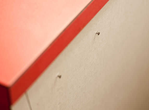 Para colgar el termostato en el armario adyacente necesita hacer dos agujeros para los tornillos, luego atorníllelos hasta que haya el espacio exacto para mantener el espesor de plexiglás. Preste atención a dejar suficiente espacio para insertar y quitar el dispositivo, desplazamiento sobre los tornillos.