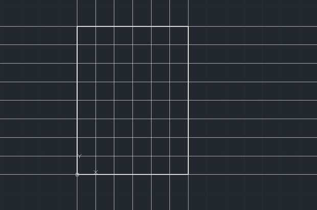 Crear una cuadrícula de líneas equidistantes, les cambio por lo que hay una fila de centro y una columna central de quads y dibujar una serie de segmentos cortos de entre los dos rectángulos.