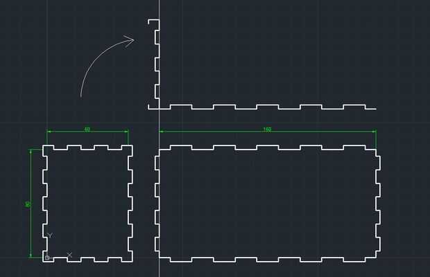 Copia y gire la parte superior de la placa frontal, para hacer la parte correspondiente de la placa superior de la caja. Tener un lado más largo perfecto copie el lado correspondiente de la placa larga ya dibujado.