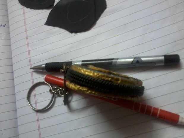 materialesFoto de guitarraantiguo llaveropinzassacador de agujeroPaso 1: paso uno separe la cadena clave.como en la fotoPaso 2: paso 2 agujero de sacador la foto de la guitarra cerca de la cimaasí como en la imagenPaso 3: paso 3tomar el enlace único