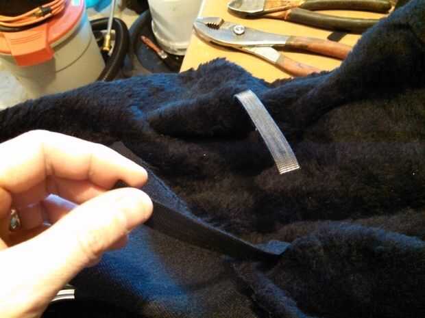 Una vez que lo tengo donde quería, corté pequeños agujeros en la tela para permitir que las correas de retención a través de.