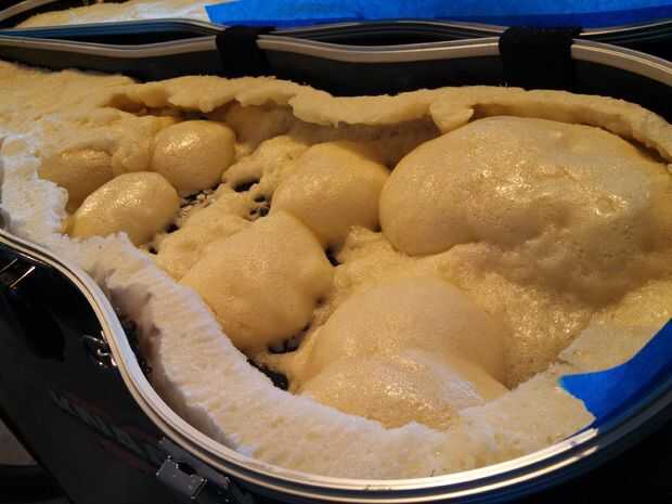 Tan pronto como corte en la parte más alta de la espuma, encontré una zona donde había formado burbujas de aire.