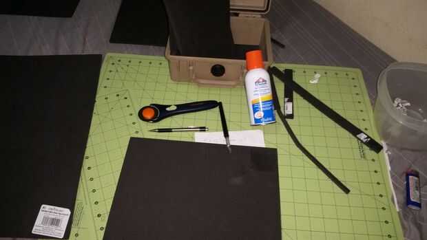 La espuma de EVA fue purchesed a Michaels por un dólar que una hoja y sólo necesitaba 6 hojas de la espuma de 6 mm como que se podrían cortar por la mitad para caber.
