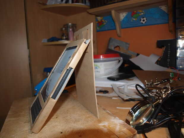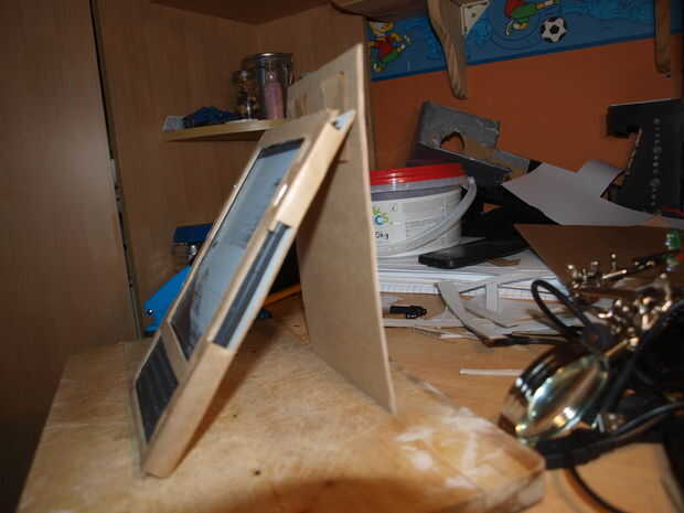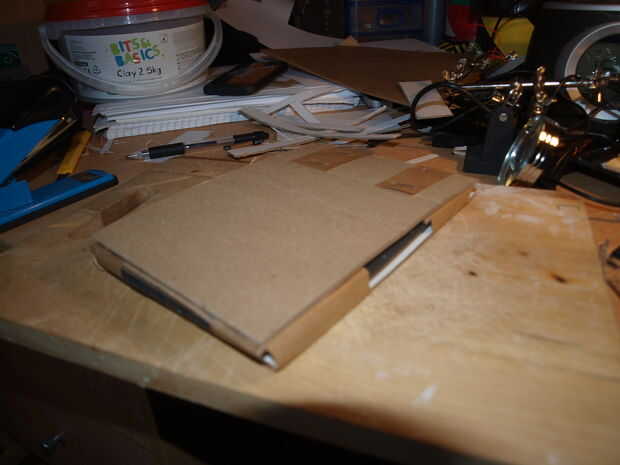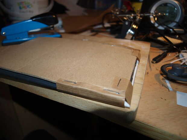 A continuación un borrador antiguo o algunos Blu Tack y debajo de la cartulina en la que vas a estable también (engañé y engrapadas en el Kindle roto, no me importaba sobre dañar) entonces deberás doblar las piernas hacia adentro de las grapas y empujarlos en el cartón para que usted no rasca su Kindle cuando se toman dentro y fuera de la caja.