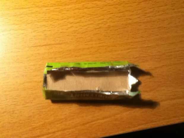 Después de poner la unidad USB/saltar en el envoltorio de goma, usted puede decidir añadir un trozo de cartón en el paquete para que sea más rígido. Esto es opcional.