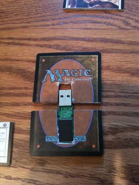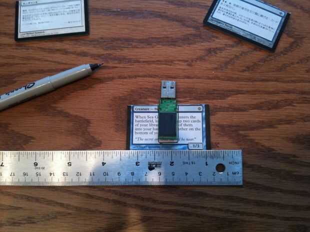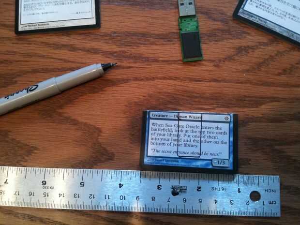 Coloque el USB en la cima de la pila de la parte inferior de las tarjetas de modo que todavía puede ser colocado en una unidad USB y proceder a traza alrededor de él con su rotulador. Tratar de conseguir como cerca del tamaño de la unidad flash como usted puede. más adelante encontrará más ajustados se adapta mejor resultará.