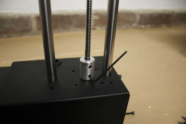 Utilice una llave Allen de 2mm para quitar el tornillo de la parte inferior. Sujete una de las dos varillas lisas bien, de lo contrario caerá la placa del motor.
