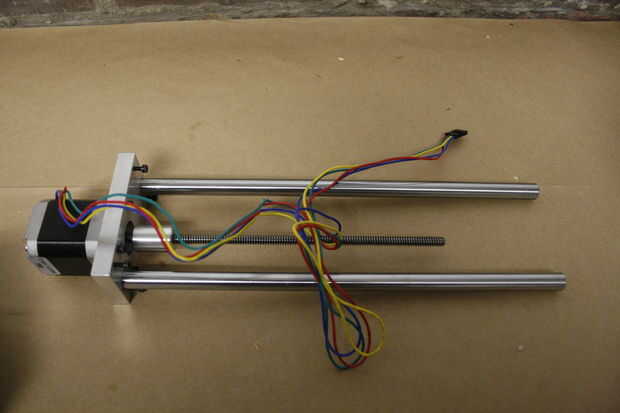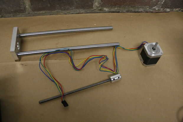 Tendrás ahora 3 piezas, el motor, la varilla roscada y las barras de coche para el brazo de la extrusora. Vuelva a montar con los tornillos en los lugares adecuados para que podemos embalar como una sola pieza.