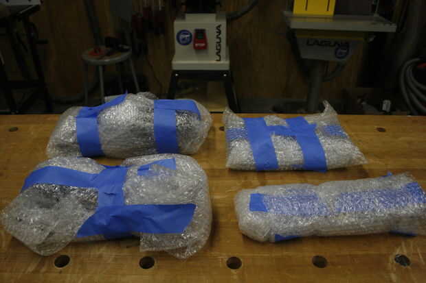 Utilice el abrigo de burbuja para envolver muy bien todas las piezas juntas.