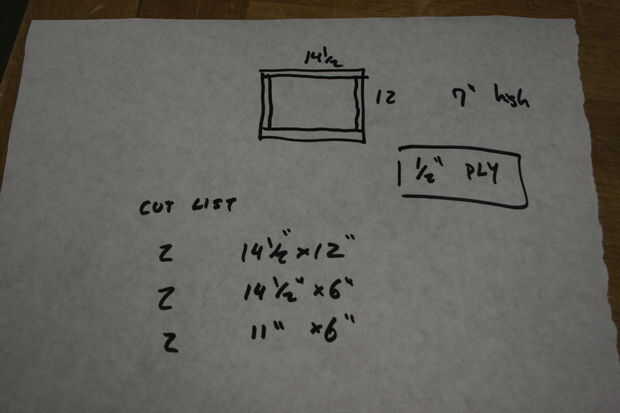 Comprobación hacia fuera de la madera que estaba disponible de inmediato — algunas longitudes más cortas de 1/2 capas, he hecho algunas ligeras modificaciones en la lista de corte. Corte el marco externo en la Sierra de mesa (no fotografiada) y terminó con dos de 14.5 "x 7" piezas y dos de 11 "x 7" piezas.