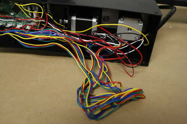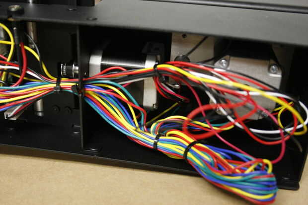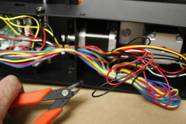 Tenemos que descolgar varios pedacitos de la electrónica para ello. Con las tijeras para alambre, cortar todos los lazos zip manteniendo la electrónica en su lugar.
