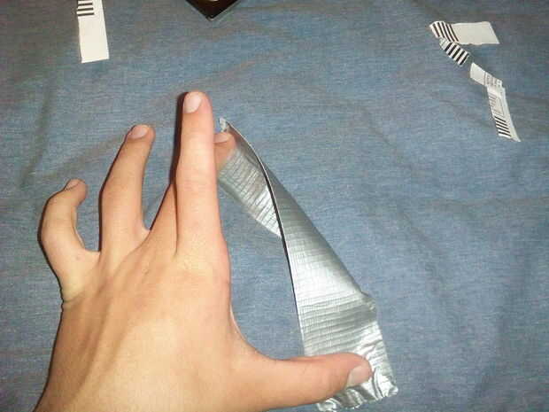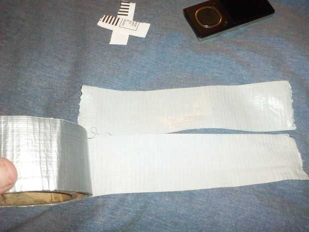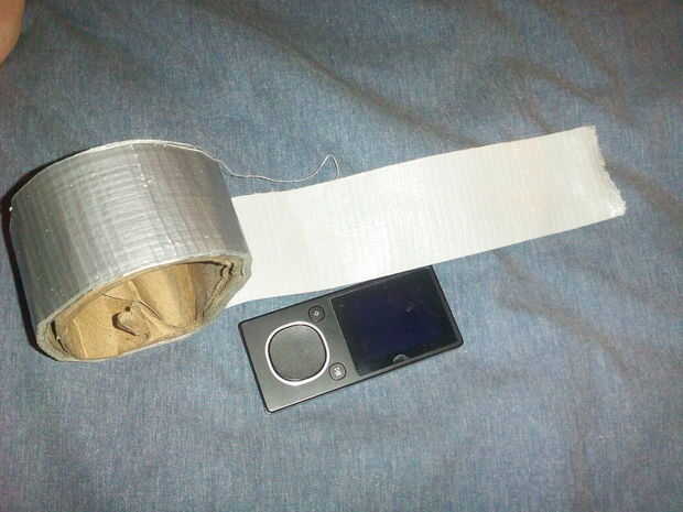 En primer lugar, su rollo de cinta de conducto y medir una pieza que es dos veces tan larga como tu zune (largo en vertical) Tear a continuación, otra pieza que es del mismo tamaño que la primera. Por último, pegan las dos piezas mismo tamaño para que usted obtenga una pieza de cinta adhesiva de dos lados.