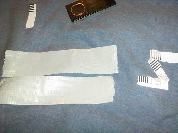 Paso 1: Corta la cinta del conducto Necesita un viejo caso de esto y de cinta de corsePaso 2: Coloque Comprobar es del tamaño adecuado y abogar por la cinta a lo largo de su caso antiguo. * hacer Shure es estrecho *Paso 3: franja Una vez que tenga co