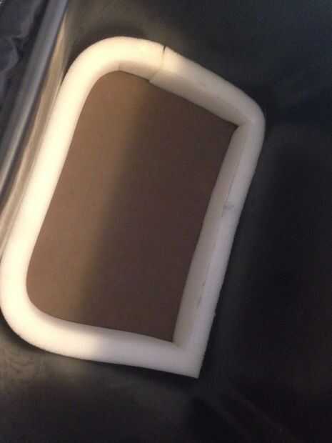 Antes de cortar las bandejas más, deja el pegamento en las paredes exteriores de nuestra bandeja de primera. Tome el cojín de espuma y cortar un nùmero con una anchura de la profundidad que su intento de ser. Mi primera bandeja es 1,5 pulgadas de profundidad y necesitaba 2 tiras para ir totalmente.