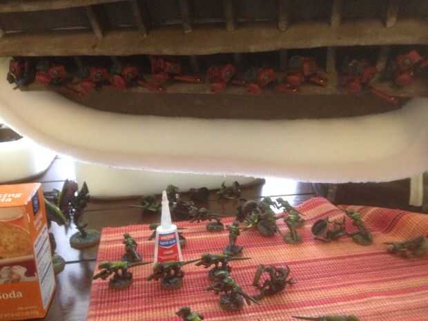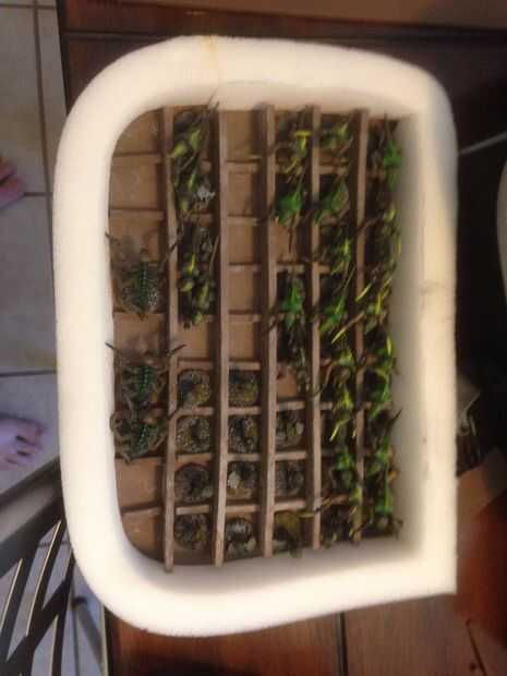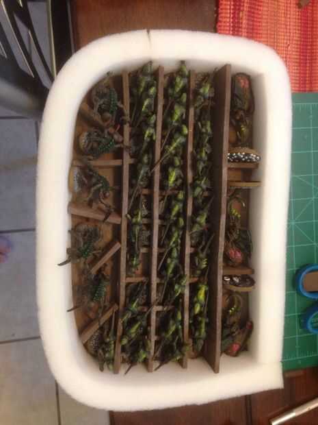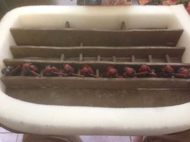 Primer plan hacia fuera cómo desea que sus modelos en cada bandeja. También pensar en cómo desea que sus modelos para caber en el intento. En las fotos anteriores, he dado ejemplos de ambas sueltas fit y fit apretada. También he utilizado paredes mucho más bajas (inferiores a paredes exteriores) para que cosas como colas o armas de fuego pueden pegarse hacia fuera y más. Esto funciona muy bien si hacen que abraza la base lo suficientemente apretada como para que el modelo no se mueve.