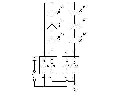Los cables blancos son LED y los cables de color de rosa son dirigidos positivo. Todos están conectados al cable de 4 conductores.