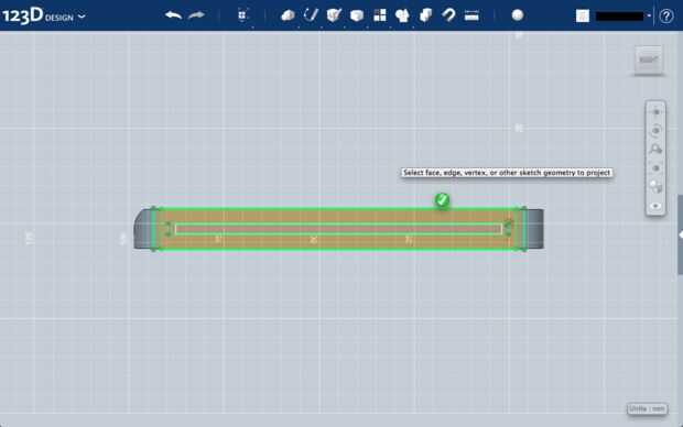 Debajo de "Bosquejo", seleccione "Project" y haga clic en la cara extruida. A continuación, haga clic en el rectángulo proyectado en el bosquejo pasado.