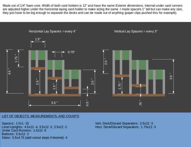 Sin embargo sé que mi camino alrededor de software 3d. El dibujo más bonito es una vista lateral de ambos titulares de la tarjeta. Puesto que la anchura de ambos es de 12" no ve la necesidad desorden cosas con parte frontal o superior. El soporte de piezas me fui un poco bruto a propósito. He visto a otros usar pequeños recipientes o ziplock bolsitas de plástico que funcionan bien también. Decidí utilizar el cuadro de Firefly y crear un soporte de pieza simple. Puede usar lo que quieras, más importantes son los tarjeteros para facilitar la instalación.