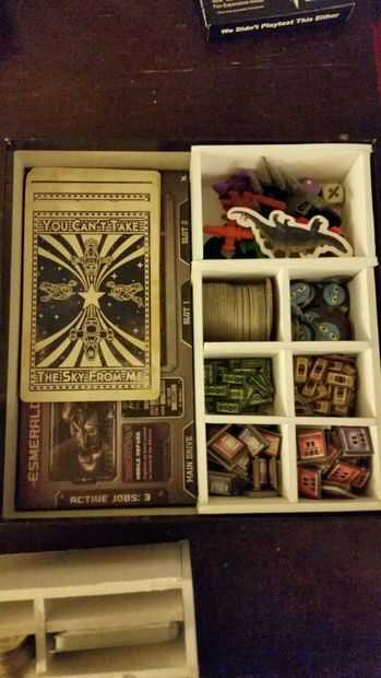En general estoy contento con los resultados. No tienen esquinas perfectas o perfectas costuras o cortes perfectos, pero funcionan bien. No estoy seguro si voy a hacer las cubiertas para los titulares de la tarjeta, 50-50 en la valla si necesitan una cubierta o no. No tengo todas las placas de expansión o paquetes todavía. Hasta ahora sólo romper Atmo, esmeralda y piratas pero plan para conseguir el resto. Creo que esta instalación será capaz de mantener a todos. Una vez me quede sin habitación voy a hacer un soporte de dinero que irá en la caja al otro lado de las piezas pero que trabajan en el portatarjetas horizontal por ahora. No estoy seguro que todos los tableros cabrán en la caja principal con el soporte de piezas como lo es ahora hasta el borde de la caja original. Ver lo que cambia cuando se cruza ese puente.