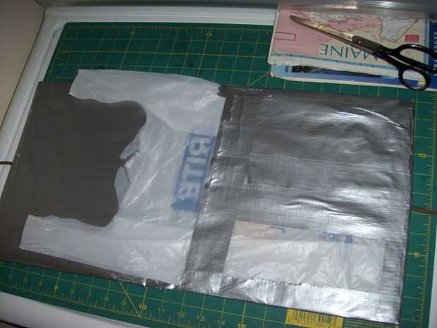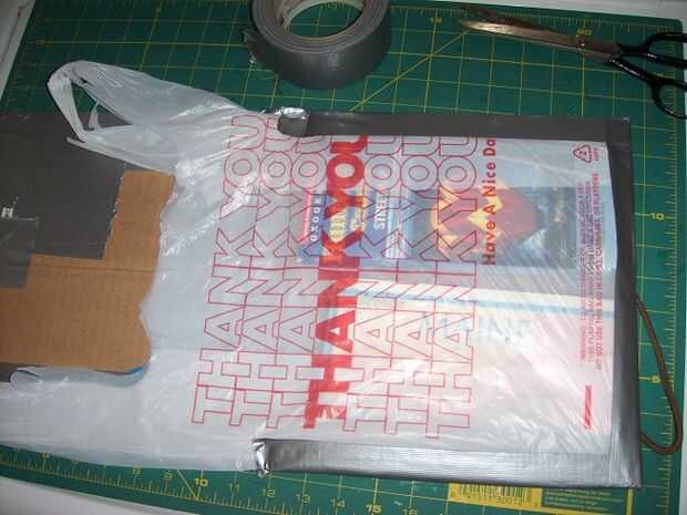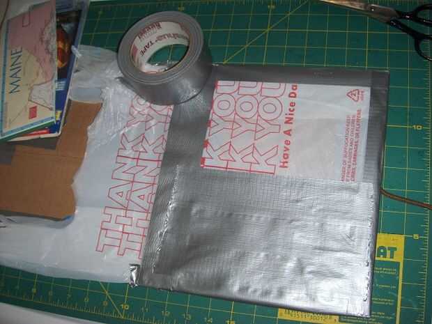 Con cinta adhesiva la parte inferior y dos bordes laterales de la bolsa. Te darás cuenta de que puse unos mapas en la bolsa que estaba trabajando con darle algo de masa y lo que se mueva demasiado tiempo estaba haciendo esto.