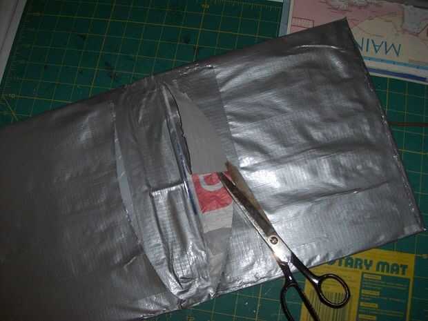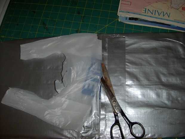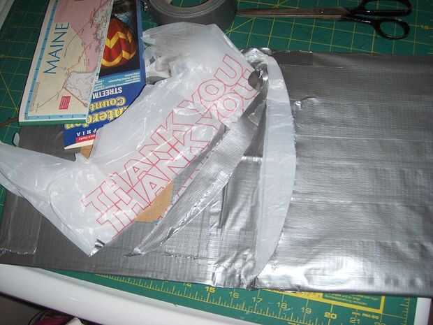 Idealmente, usted tiene dos bolsillos de cinta del conducto que se alinean con el material de la bolsa de plástico y cuyo extremo abierto se enfrentarán en el centro de la carpeta.