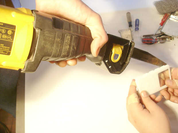 Con la hoja de demolición en sierras-todo con cuidado quitar todas las fichas que se utilizan para unir las dos piezas del Ipod. No necesitan estos una vez que tienes las bisagras y los imanes instalados.