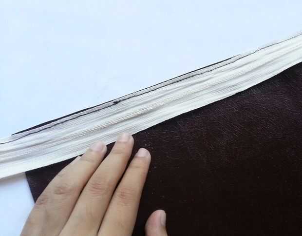 Sostenga el otro borde de la tela de vinilo junto al borde de la cremallera.