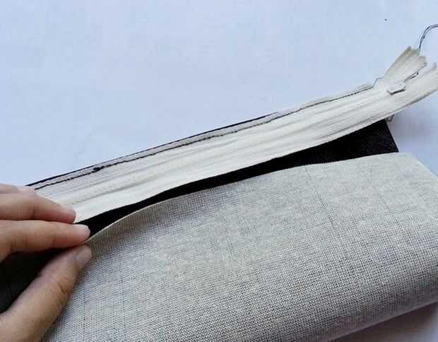 Cosa por el otro borde para fijar la cremallera con la tela.