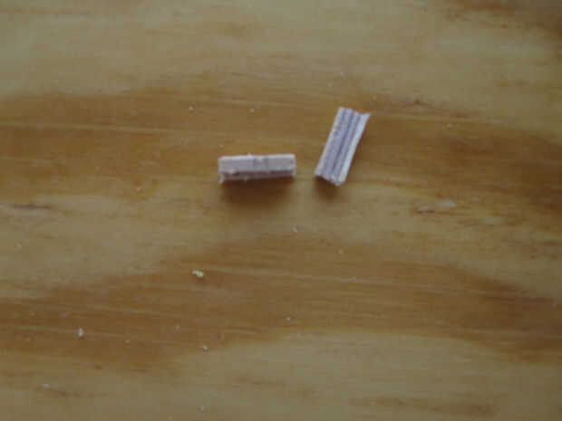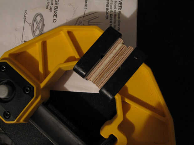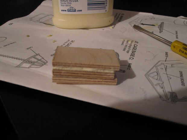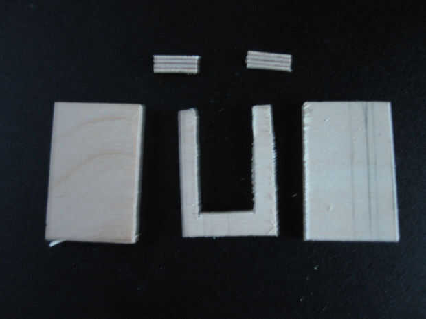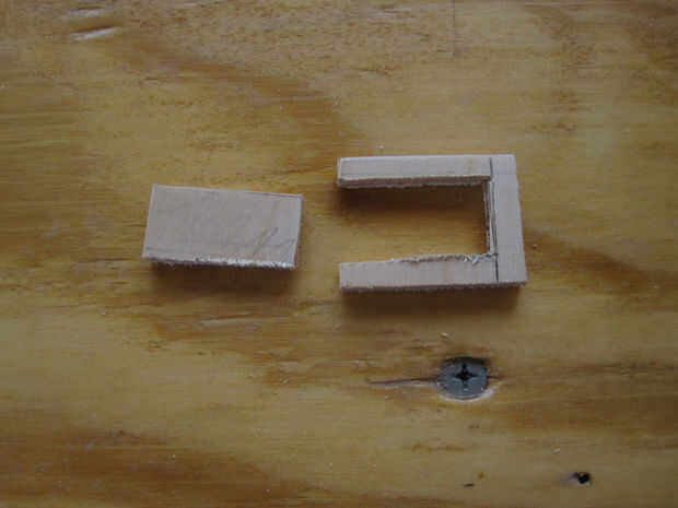 Así, como se puede ver, la impulsión del flash se ajusta a nuestra pieza en forma de U algo muy bien. Mientras estuve cortando, yo también corte dos pequeños espaciadores, que eran 1/8" por 1/2". Usamos estos para algo muy importante más adelante.
