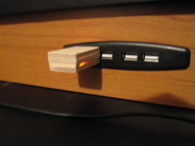 Después de eso, tienes totalmente entubado USB flash drive, con una tapa. Conecte la unidad a un ordenador para ver si funciona. Si no hace nada extremo a la unidad, como arena de gato, o quemar la mierda del caso de una estufa de leña, debería funcionar bien. Este uno, y puedes incluso ver el LED rojo brilla desde el interior de la caja de madera.
