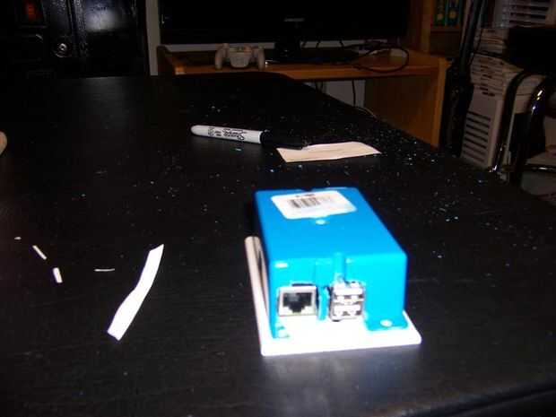 tengo dos RPI es un servidor multimedia para mis programas de televisión pregrabados; el otro está conectado a un Motorola Lapdock para ejecutar experimentos y fines educativos. Soy un ingeniero que voluntarios de los Boy Scouts of America enseño informática en la Universidad de insignia de mérito de Rhode Island y planea dar mi presentación desde mi RPI. También es un servidor web para aquellos que toman la clase. En mi búsqueda para gabinetes de bajo costo que vi alguien utilice 2 cubiertas de placa eléctrica como un sándwich con espaciadores. Así que pensé ¿y si el IPC podría caber en una caja estándar? Lo que encontré es que "sólo" caben en una caja de trabajo antiguo de 8 pulgada cúbica 1-Gang con bridas.
